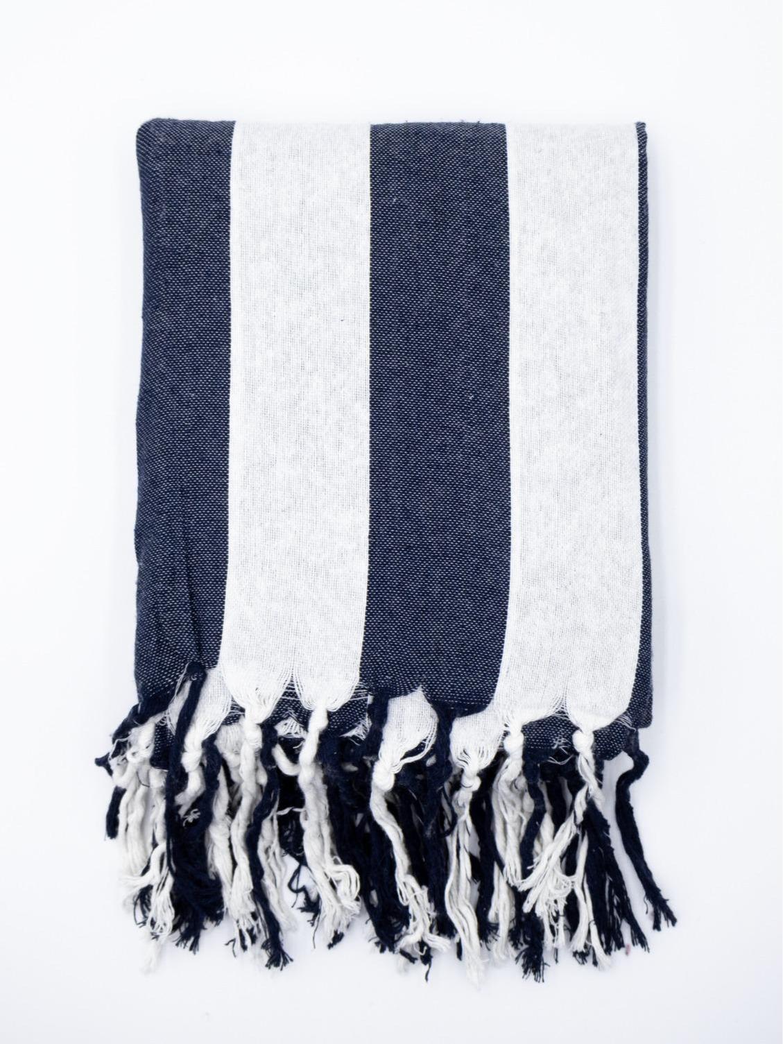 Su diseño a rayas con flecos decorativos aporta un toque bohemio y elegante a cualquier espacio.